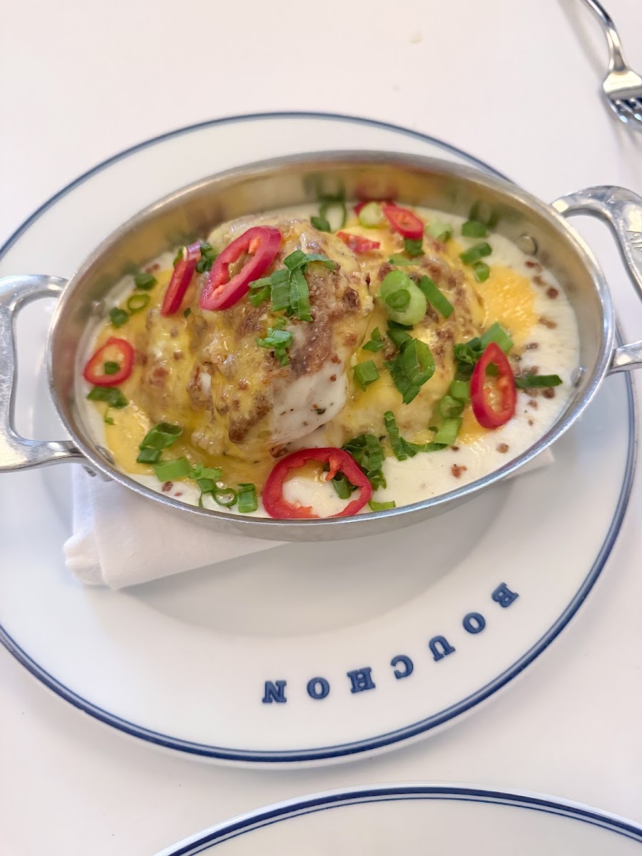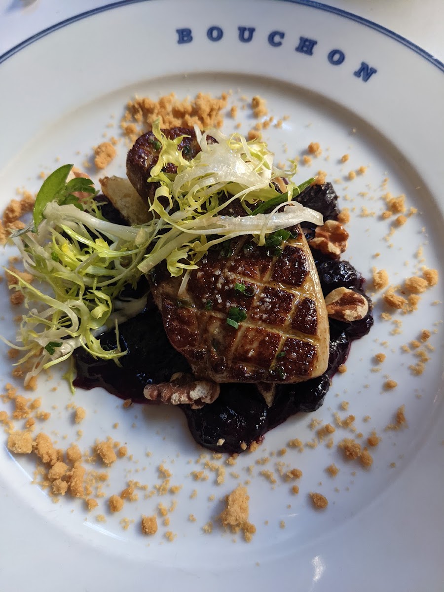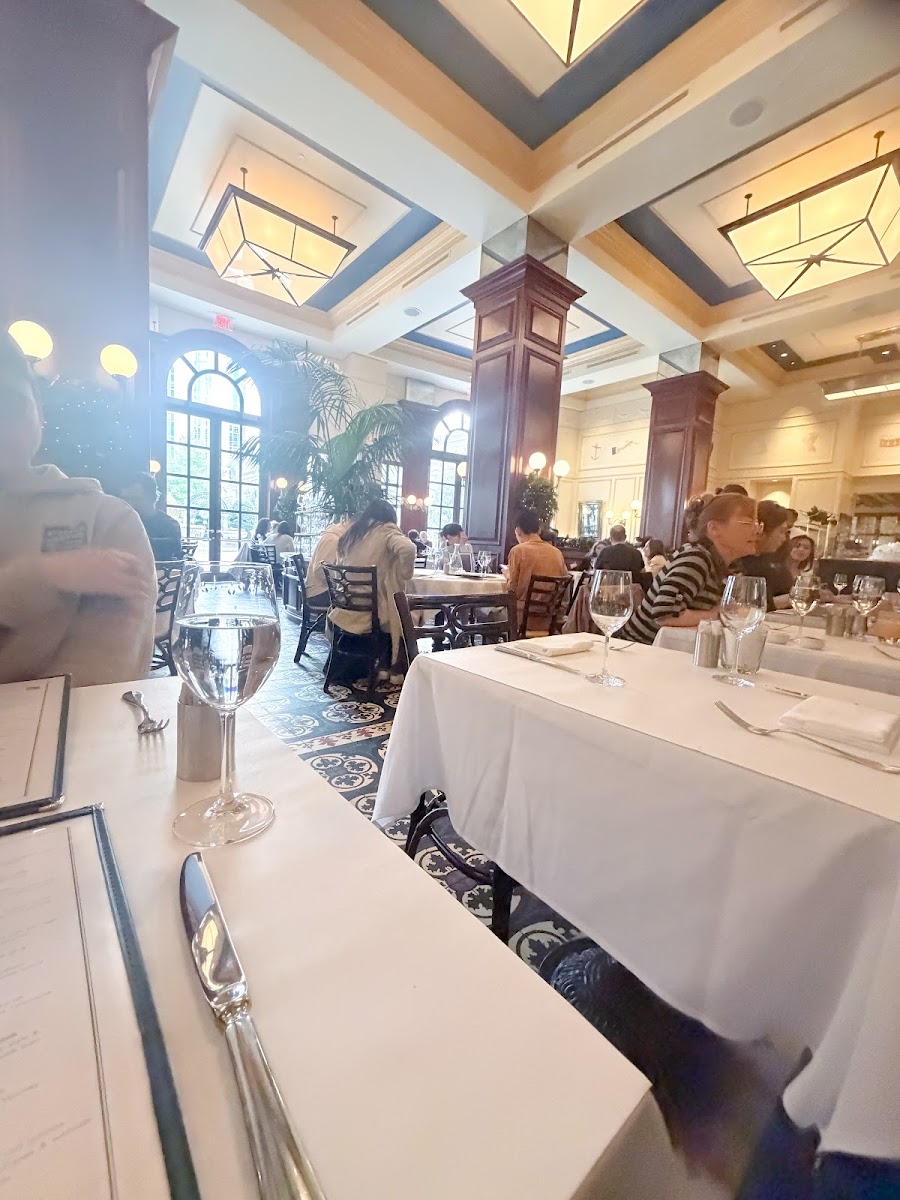 We stopped by Bouchon for brunch as part of a staycation, and even on a busy Saturday, everything went really smoothly thanks to having reservations. We've also been to another Bouchon location before (Yountville, CA), so we had a good idea of what to expect, and this one delivered that same polished experience. We ordered the Croque Madame with truffle fries and the Biscuit au Babeurre. Both were well made and nicely executed. We also loved the little details -- especially the leaflet-shaped bread that came out complimentary. Everything felt rich without being overwhelming, and perfect for a leisurely brunch. The ambiance is lovely as always: classic, elegant, and definitely on the fancier side. This is one of those places we like to save for special occasions or a nicer brunch/lunch, as it is a bit pricey for an everyday visit, but absolutely worth it when you want something elevated. Overall, a spot we continue to enjoy and will definitely come back to in the future when we're in the mood for a more refined brunch experience.