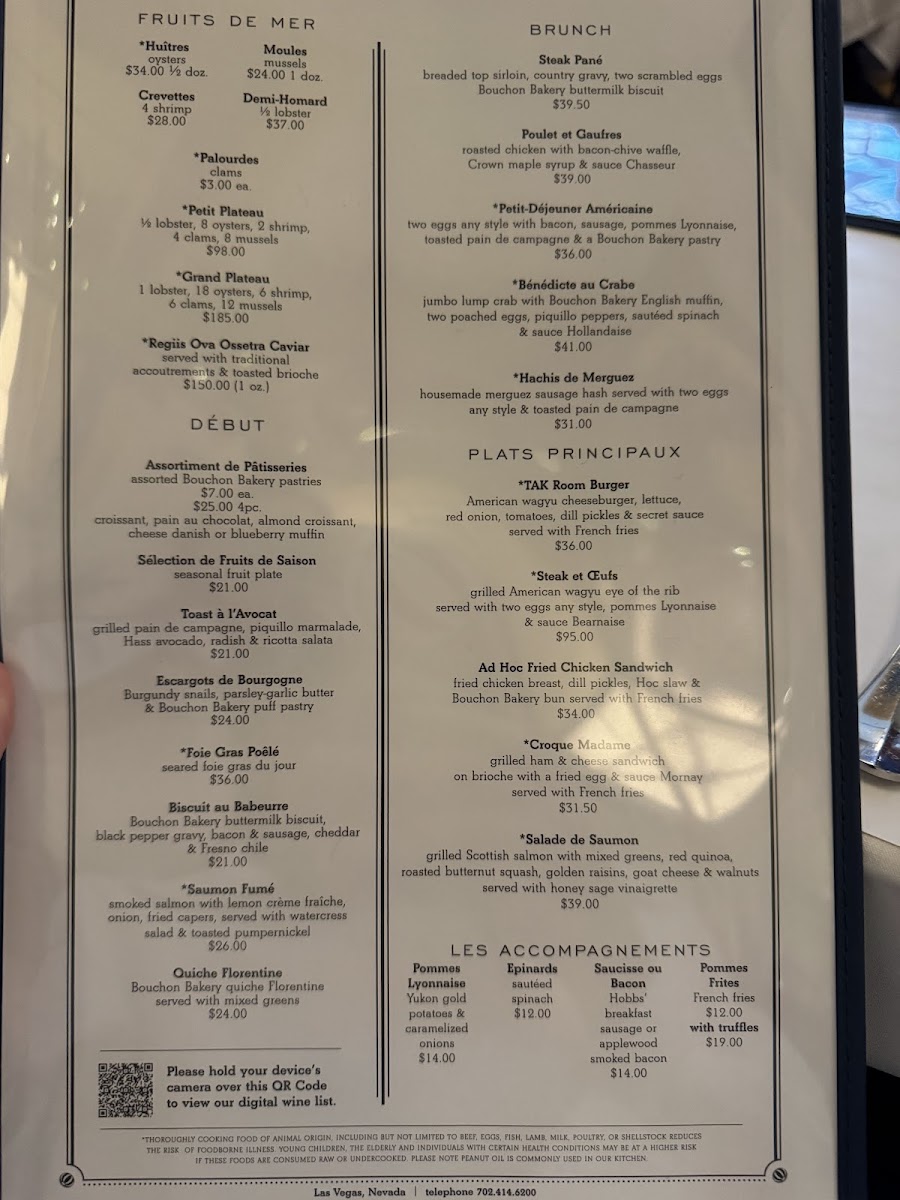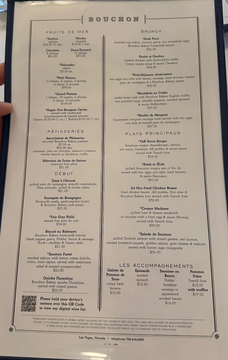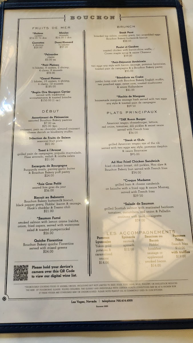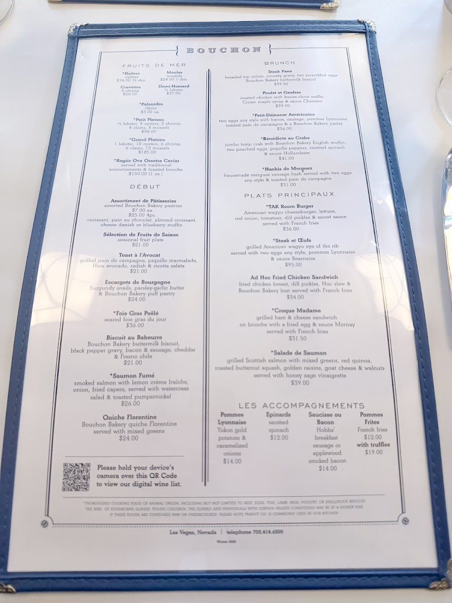 At Bouchon at The Venetian, the menu reflects the charm of a traditional French café infused with a refined touch, offering a thoughtful balance between comforting classics and elevated dishes. Whether you arrive for a leisurely breakfast or a relaxed dinner, you’ll find a selection designed to complement the inviting atmosphere and soft natural light that fills the dining room.